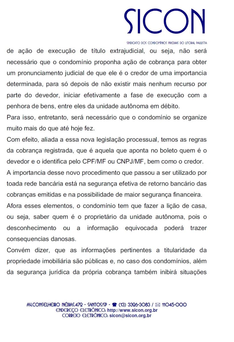 Atentem-se para o fato que a atualização exigida pela Febraban, se feita corretamente com base no nome dos reais proprietários dos imóveis, em muito auxiliará os advogados nas cobranças judiciais.