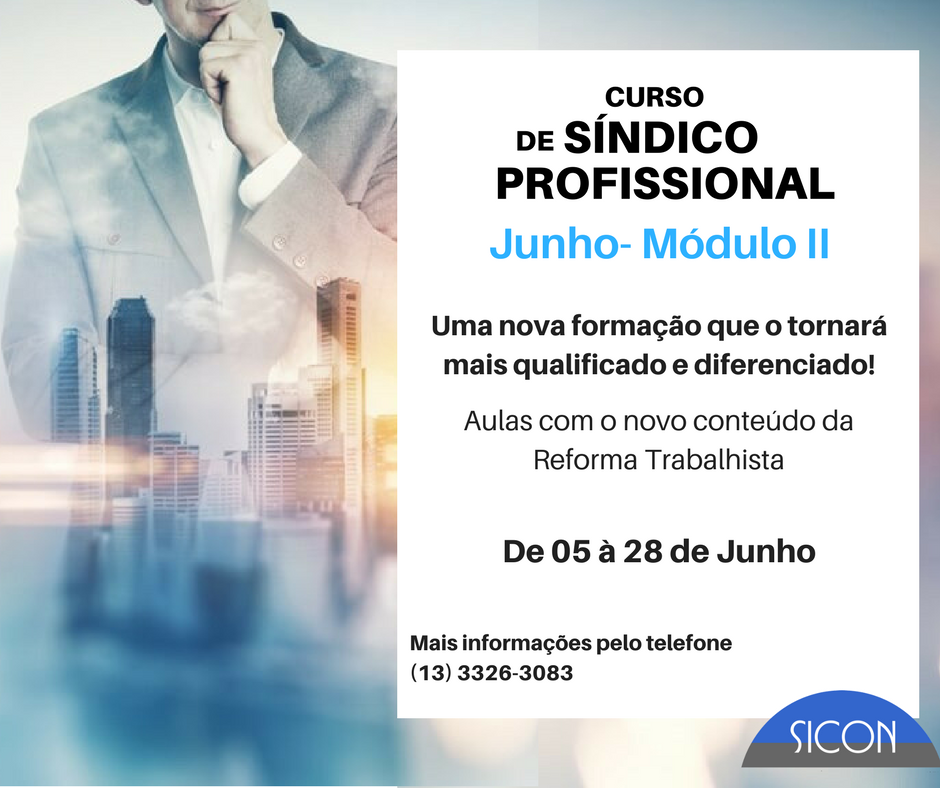 Venha participar do Curso SÍNDICO PROFISSIONAL - MÓDULO II - realizado pelo SINDICATO DOS CONDOMÍNIOS PREDIAIS DO LITORAL PAULISTA - SICON