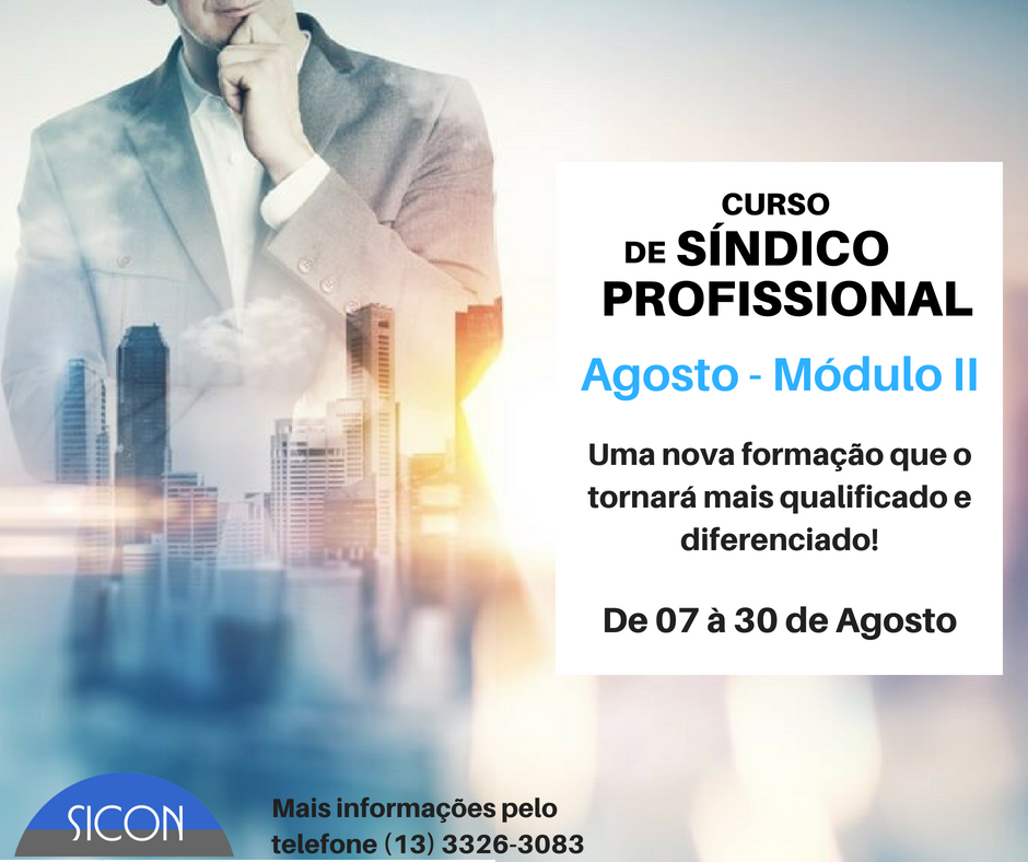 Venha participar do Curso SÍNDICO PROFISSIONAL - MÓDULO II - realizado pelo SINDICATO DOS CONDOMÍNIOS PREDIAIS DO LITORAL PAULISTA - SICON